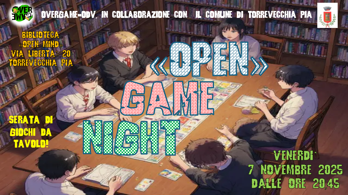 Serata di giochi da tavolo. 07/11/2025 dalle ore 20:45 presso Biblioteca Open Mind - Via Liberta 20.